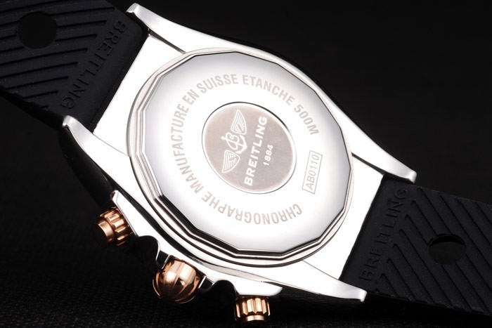 Zadní díl: nerez ocel Push-in případ zpět s Breitling engravingsGender: UominiMovement: Quartz (baterie) Quality: Japonský MiyotaColor: NeroCase: leštěná nerezová ocel caseBracelet: Celer černou pryž popruh s vyrytým z nerezové oceli háček přezkou sponou s logem Breitling na topBracelet Délka: 225 x 22 mmBezel: leštěné nerezové oceli rámeček s 3, 6, 9 a 12 hodin žluté zlato index markery a ryté minut markingsBand Typ: PelleDiameter: 53 x 43 mm Chronograph: SiWatch spony: Flip ClaspGlass: Sapphire CrystalCrown: 18k žluté zlato pokovené nerezové ocel vyřezávání korunka s Breitling logem a dvěma menšími korun na obou stranách it Case tloušťka: 17 mm