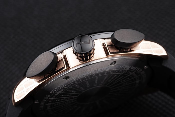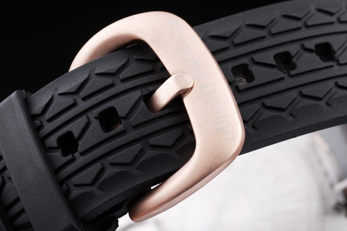 Bracelet: pneumatik drážka černý gumový pásek s teplem reliéfní Porsche razítko a rose-gold hák Přezka sponou Porsche inscription